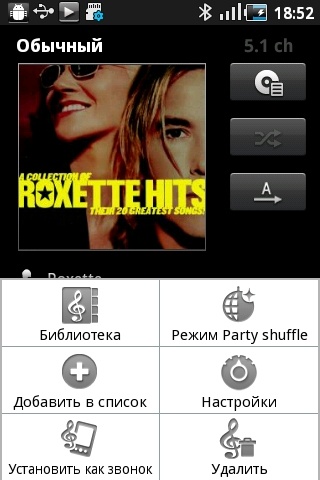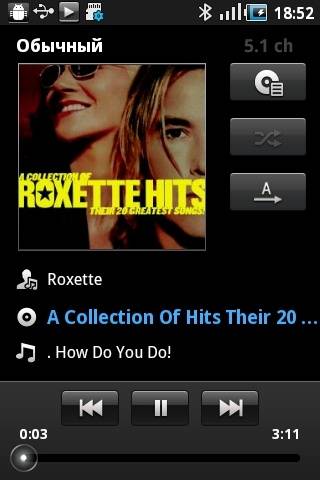 Установленный медиаплеер порадовал своей функциональностью. Он сортирует все файлы опираясь на ID3-тэги (если находит их). Так треки могут быть сгруппированы по исполнителю, альбомам, либо по алфавиту. При воспроизведении показывается основная информация: название, исполнитель, альбом, а также обложка альбома, если такая найдется. Кроме того присутствует эквалайзер, а в системной области уведомлений при воспроизведении отображаются элементы управления плеером.