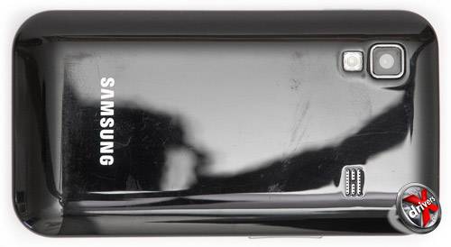 Вся тыльная панель, как уже было сказано выше, прикрывается крышкой аккумуляторного блока. В теле крышки реализовано несколько прорезей под выводы различных функциональных элементов – глазок встроенной камеры, небольшой глазок LED-вспышки, а также сетки динамика громкой связи.