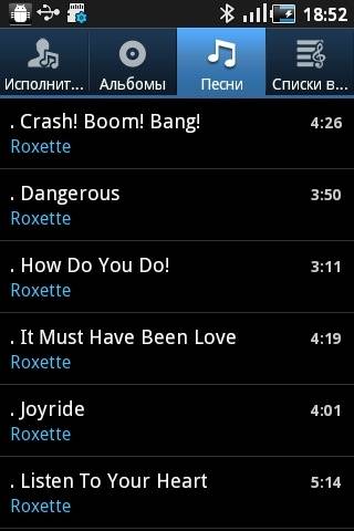 Интерфейс первого из приложений прост. В общем списке представлено отображение всех имеющихся в памяти устройства композиций.