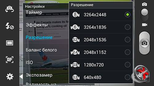 В настройках интересна возможность непрерывной съемки, когда делается до 20 кадров подряд. А также появившаяся в Galaxy S III функция Best Shot, когда сразу делается 8 снимков, а из них потом можно выбрать лучший.