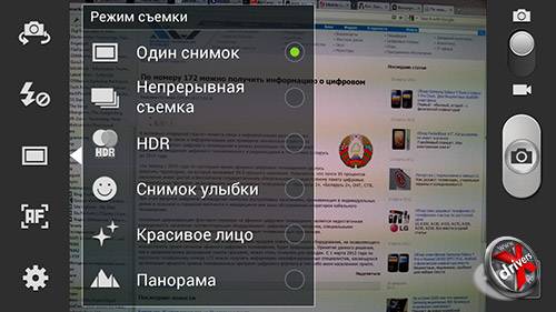 Прибавилось и режимов съемки. Например, появился модный и актуальный сегодня режим HDR.