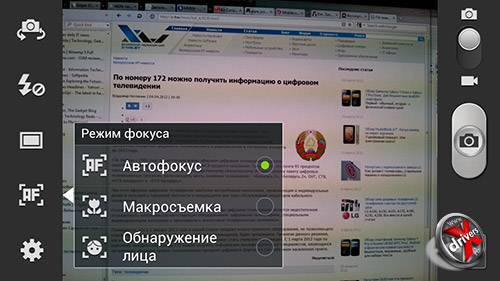 Для автофокуса существует три стандартных режима: автофокус, макросъемка и поиск лица.