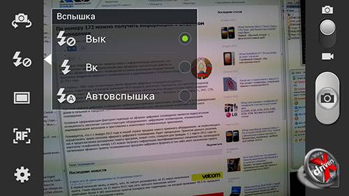 Телефон снабжен светодиодной вспышкой, которая может срабатывать автоматически в зависимости от освещения, либо быть всегда включенной или выключенной.
