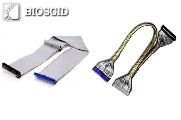 Внешний вид интерфейсного кабеля: cлева – плоский, справа в круглой оплетке – PATA или IDE.