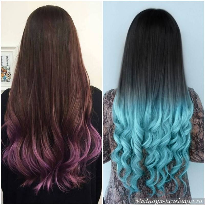 Омбре – плотность покраски такая же, как и в предыдущем случае. Также окрашиваются только кончики, но цвет может быть радикальным. Темный верх, светлый низ.