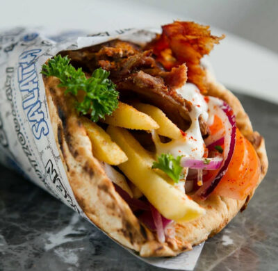 - Гиррос – это греческая шаурма, которая взяла свое название от мяса, которое заворачивают в тонкое без дрожжевое тесто.