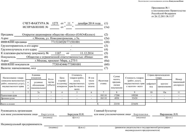 Внимание! Электронный вариант документа действителен, только если передается по электронным каналам связи с использованием квалифицированной цифровой подписи. Счет-фактура содержит следующие реквизиты:. Счет-фактура содержит следующие реквизиты: