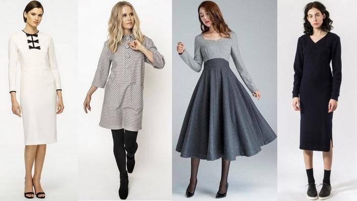Зимние изделия из шерсти радуют улучшенными согревающими свойствами. Платья из шерсти выручат в непогоду, а элегантная юбка из шерсти дополнит деловой образ в межсезонье. Также для офиса подойдет женский костюм из твида.