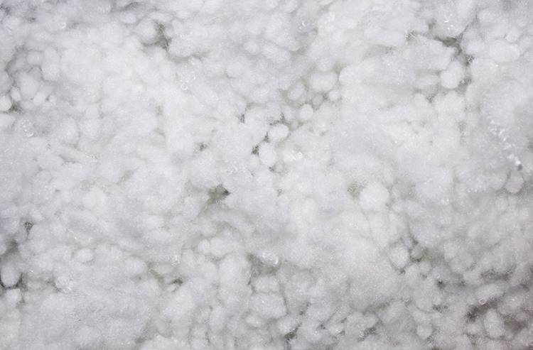 Каждое волокно холлофайбера закручено в настолько тугую пружинку, что кажется маленьким шариком. В целом же масса утеплителя напоминает пушистый снежный сугроб или воздушное облако.