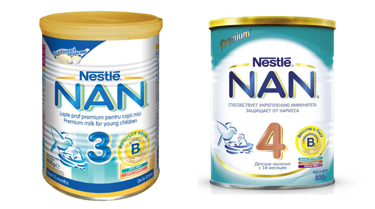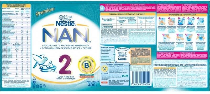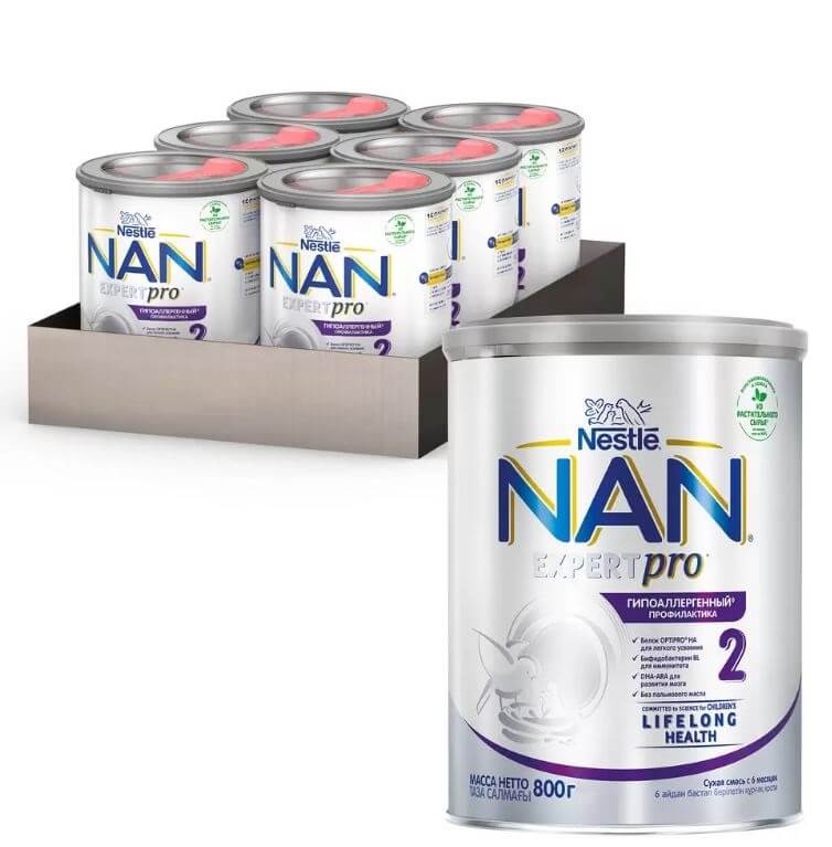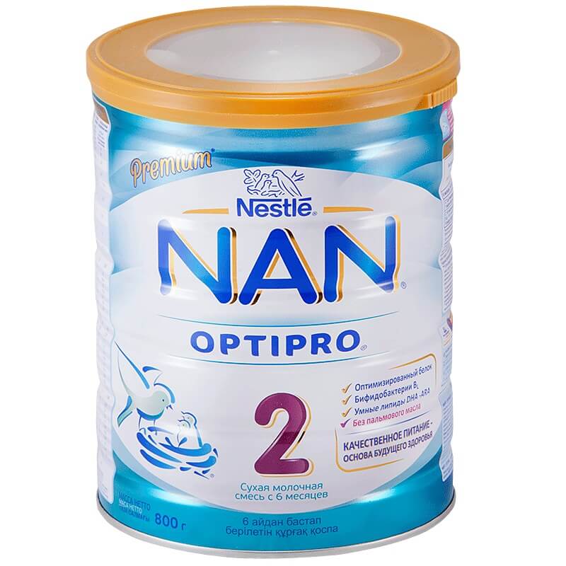 NAN 2 — сухая молочная смесь, сделана докормом для здоровых детей с 6 первых месяцев наряду с продуктами питания. Она также обогащена широким комплексом витаминов и минералов, как и смесь NAN1. Но менее жирная, в отличие от NAN1.