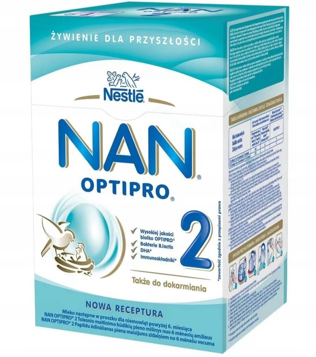 NAN 2 — сухая молочная смесь, сделана докормом для здоровых детей с 6 первых месяцев наряду с продуктами питания. Она также обогащена широким комплексом витаминов и минералов, как и смесь NAN1. Но менее жирная, в отличие от NAN1.