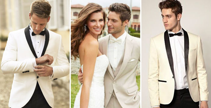 Часто смокинг выбирают женихи в качестве свадебного мужского костюма . Чтобы не смотреться слишком мрачно рядом с невестой в белоснежном платье, выбирайте наряд оттенка слоновой кости.