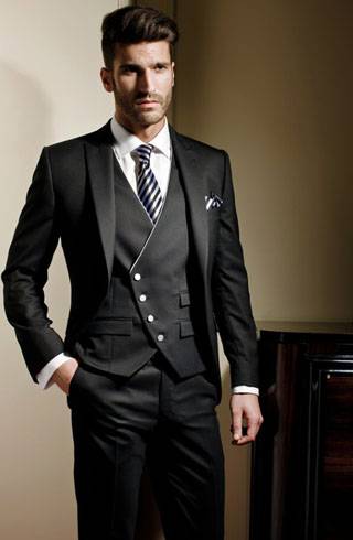 Классический мужской костюм может дополняться жилетом. Его элементами являются сорочка, галстук продольный или в виде бабочки. Обязательны туфли классического кроя. Иногда он дополняется шляпой, запонками на манжетах сорочки, нагрудным платком. Такая одежда предназначается для ношения на официальных мероприятиях и праздниках, во время публичных выступлений, посещений театра.