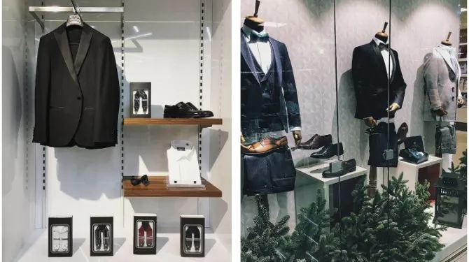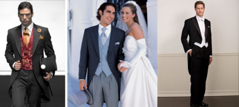 Разница между обеденным пиджаком и современным костюмом заключается в приталенности и атласных лацканах. Как и костюмный пиджак, он может быть одинарным или двухслойным, но не может носиться без пуговиц. Пиджак должен сочетаться с определенными брюками и рубашками. Сам пиджак может быть только черного или морского синего цвета. Фрак — это еще один вариант мужской одежды, который отличается от традиционного пиджака с длинным хвостом в виде ласточкиного хвоста. Она имеет довольно узкий верх, обтягивает силуэт и может сочетаться только с определенной мужской одеждой. Хвост доступен только в черном цвете.
