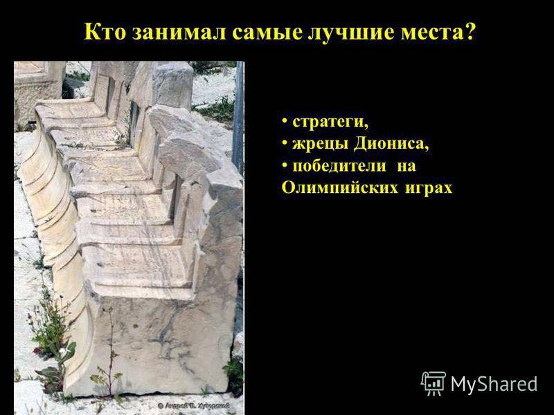 Кто занимал самые лучшие места? стратеги, жрецы Диониса, победители на Олимпийских играх