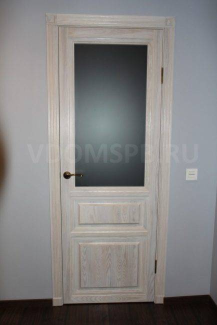 Ну а дуб и ясень сочетают в себе все плюсы: очень красивый яркий рисунок, древесина крепкая, твёрдая, прекрасно обрабатывается и потом не подкидывает сюрпризов, как сосна. Поэтому эти двери самые дорогие, от 22000 рублей за полотно. У дуба и ясеня рисунок обычно не закрашивают, а делают его ещё более ярким, выразительным. Используют для этого разные техники: двухцветные тонировки, травление, браширование и т.д.