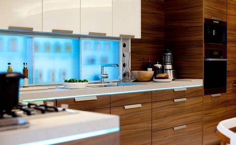 2. Если шпонированные фасады для кухни изготовлены не очень качественно, шпон может деформироваться и отклеиваться. Ведь кухня — это помещение, где мебель подвергается различным агрессивным воздействиям, таким как высокая влажность, перегрев, серьезные загрязнения. Поэтому, заказывая шпонированную кухню, не экономьте. Раз уж решились на вариант подороже — идите в своем стремлении до конца. Обращайтесь к производителям, внушающим доверие.