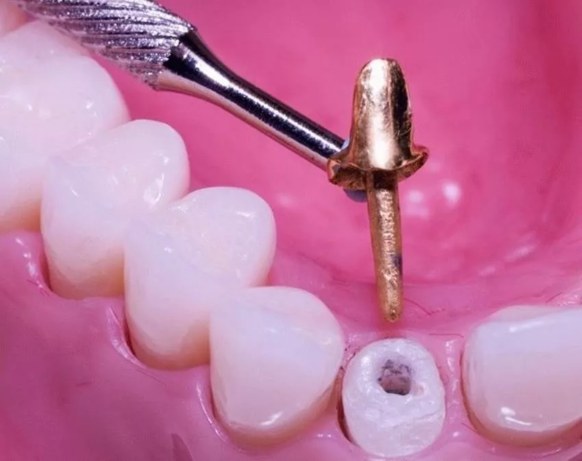 Штифтовую конструкцию можно установить только при наличии зубного корня. Штифт создан для укрепления зуба с целью его сохранения. Одна часть данной конструкции фиксируется в зубном канале, а другая возвышается над десной.