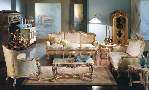 Итак, к предметам мебели в гостиную в стиле барокко выдвигаются следующие требования: