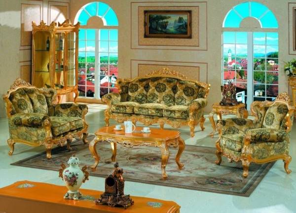 - Она должна быть крупной, тяжелой и помпезной. Кресла и диваны должны быть мягкими и удобными;