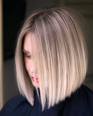Боб чуть ниже линии плеч, асимметричный боб и боб с удлинением спереди — три кита для девушек с квадратным или круглым лицом. Приближенные к лицу пряди выделяются зональным окрашиванием на один-два тона темнее оттенка основной массы волос, что также визуально вытягивает черты лица.