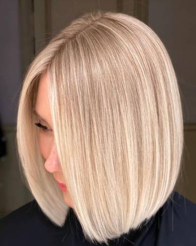 Идеально подходит для прямых волос с более густой текстурой. Длина доходит до плеч и слегка удлиняется вперед. Кончики повернуты внутрь, что создает объем, который выглядит аккуратно, стильно и жизненно. Если вы объедините эту форму с модным окрашиванием, получите очень яркий и современный вид. Средняя длина хорошо подходит для всех текстур: прямых, волнистых, пушистых, кудрявых, густых, тонких.