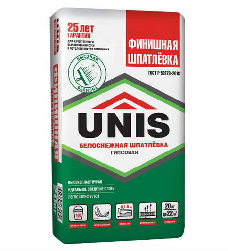 Финишная гипсовая шпаклевка Unis, 20 кг