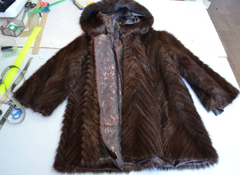 С чего начинать перекрой такой шубы своими руками? Первым делом удалите полностью подкладку и иные утепляющие материалы. Отсоедините также воротник, поскольку он вам уже больше не понадобится в любом случае. Хорошо очистите от ниток и пыли волосяной покров (щеткой) и мездру (влажной тряпочкой).