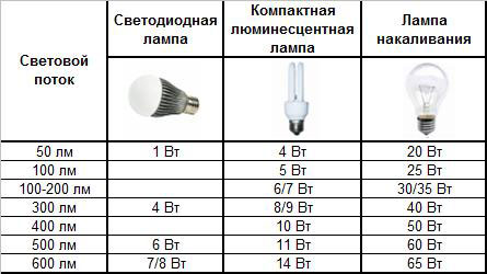 - 25 Вт ЛН отвечает 5 Вт светодиодной;