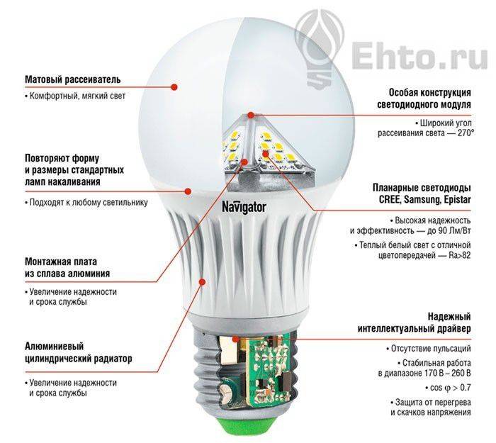 У LED-лампы все наоборот, благодаря этому она почти не нагревается.