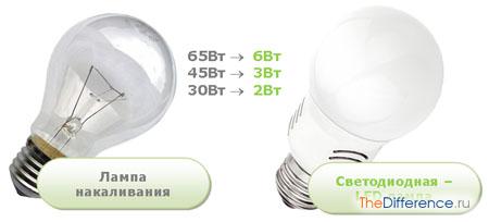 Как можно заметить, энергоэкономия существенная, и это основное преимущество светоизлучающего диода.