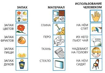 Покажи на рисунке предметы, имеющие запах. Попробуй обозначить их с помощью таблицы.