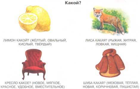 Предметы различаются по цвету, по форме, по величине, по назначению, по запаху, по материалу, из которого сделаны и по другим признакам. Чтобы определить признак предмета, можно задать вопрос: какой он?