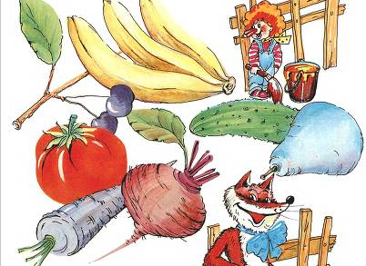 Посмотри внимательно на картинку и скажи, какие овощи и фрукты раскрашены неверно. Как бы ты их раскрасил?