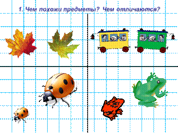 Давай попробуем выделить существенные (то есть основные) признаки обыкновенной тетради. Расскажи, какая она, тетрадь: из какого материала сделана, какого размера, какой толщины, для чего предназначена? Если ты сумел рассказать о тетради, значит, ты сумел выделить признаки, по которым она отличается, например, от карандаша. Итак, один из основных признаков предмета – это цвет. Цвет мы обозначим так: