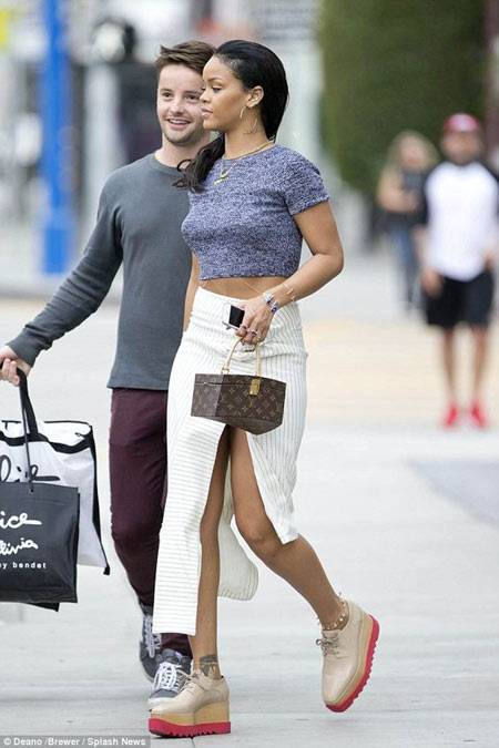 Рианна в укороченном топе и туфлях на платформе от Stella McCartney