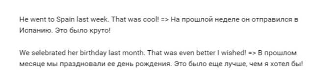 Например: That was funny! I had a wonderful time! – Это было прекрасно! Я замечательно провел время!