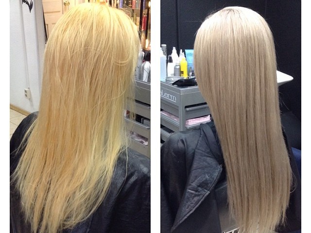 - После осветления или мелирования, чтобы выровнять цвет, восстановить и укрепить ослабленные волосы.