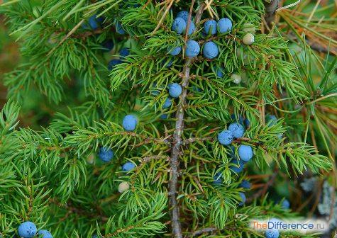 Существуют различия и в местах произрастания растений. Дикую тую можно встретить преимущественно в Северном полушарии, областях умеренного пояса. Можжевельник также встречается в Северном полушарии, но, в отличие от туи, на обширных территориях от субарктических областей до тропиков. Необходимо отметить, что оба растения отличаются неприхотливостью к почве. Именно поэтому их часто можно встретить как на загородных участках, так и в городских парках. Данные растения славятся своими способностями очищать воздух от болезнетворных микробов.