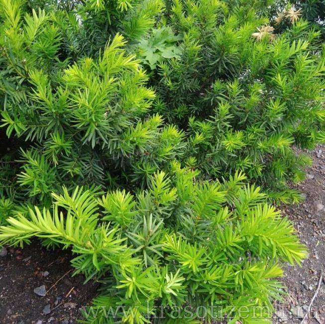 Выливать нужно по 20 л воды под каждый куст. Еженедельно орошают крону с помощью распылителя, чтобы удалить пыль, грязь и улучшить развитие хвои. Такую процедуру лучше проводить утром или вечером, чтобы под воздействием солнечных лучей не появились ожоги на растении.