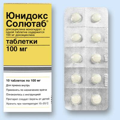 Согласно инструкции на Юнидокс Солютаб, взрослым назначают по 0,2 г доксициклина