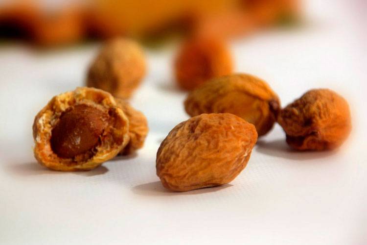 Из кайсы косточкувыдавливают, при этом не нарушая целостность фрукта, а затем сушат. Иногда в процессе подготовки используетсясера, из-за чего цвет сухофрукта может стать прозрачным. Если сушка ведетсяестественным способом, то оттенок – не яркий и темный.