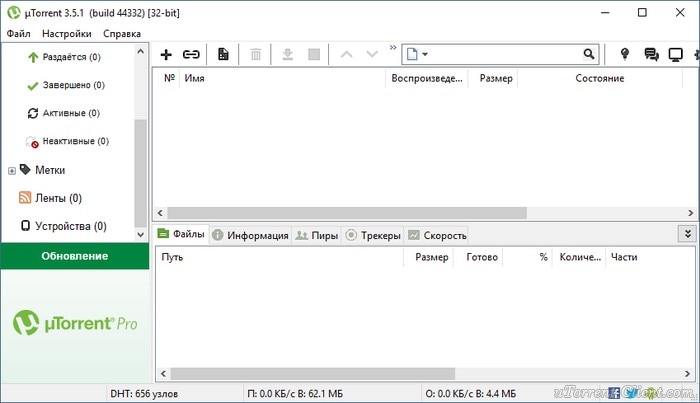Интерфейс uTorrent: