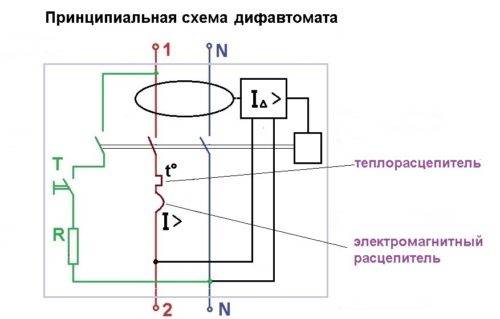 Принципиальная схема АВДТ с тепловым и электромагнитным расцепителем