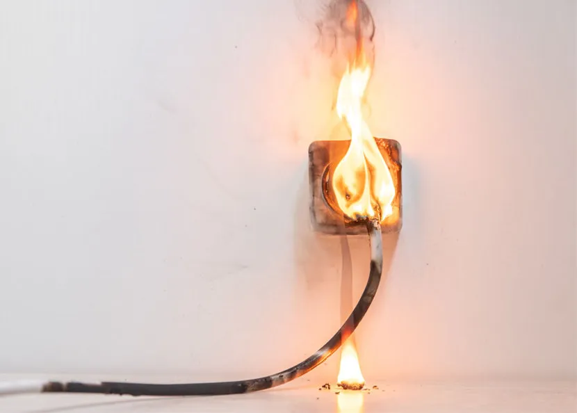 Возгорание розетки из-за неправильной эксплуатацииИсточник schor-einbruchschutz.de
