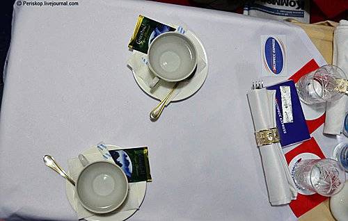 Снова заказал чай, предвкушая заварной – как по пути туда. Приносят… а он – в бумажных пакетиках! Разочарование. Вот тебе и «вип-люкс». В СВ приносили в сеточках-пирамидках – и то лучше. Неужто нельзя снабдить заварным чаем обе бригады??? Незачет.