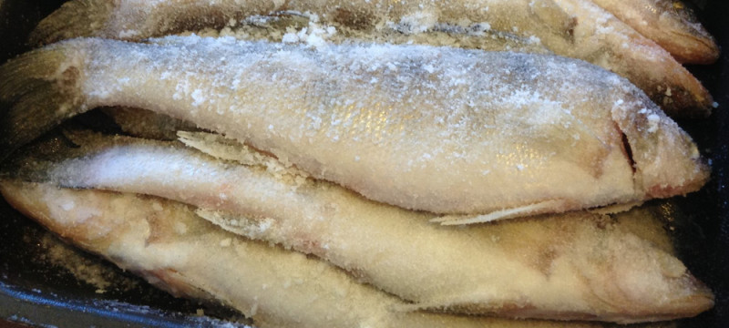 Выступающие части рыбы посыпают солью, причем выполняют это неравномерно. На средние части сыпят больше, чем на находящиеся снизу, а на верхние – на порядок выше.