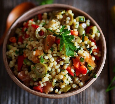 - Объединяем в одном блюде кус-кус и овощи, поливаем оливковым маслом, лимонным соком, солим/перчим по вкусу.
