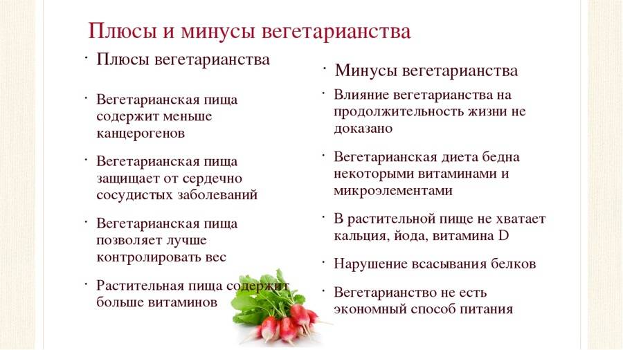 Разбираясь, чем отличаются вегетарианцы от веганов, стоит обратить внимание на плюсы и минусы каждого направления. Начнем с положительных сторон вегетарианского течения: