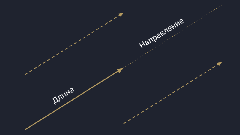Вы наверняка помните вектор из школьной программы — это такая стрелочка. Она направлена в пространство и измеряется двумя параметрами: длиной и направлением. Пока длина и направление не меняются, вектор может перемещаться в пространстве.